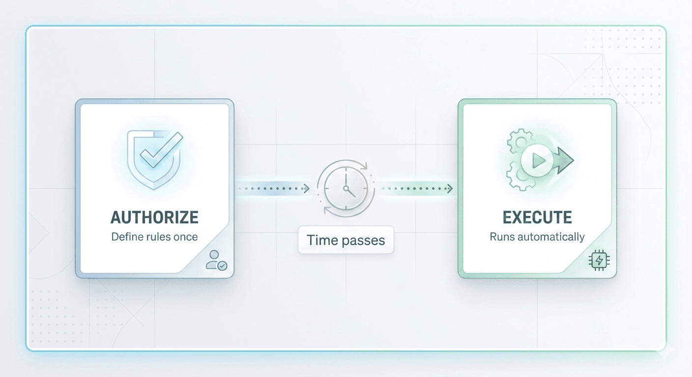 Users authorize rules — with strict time and amount limits.